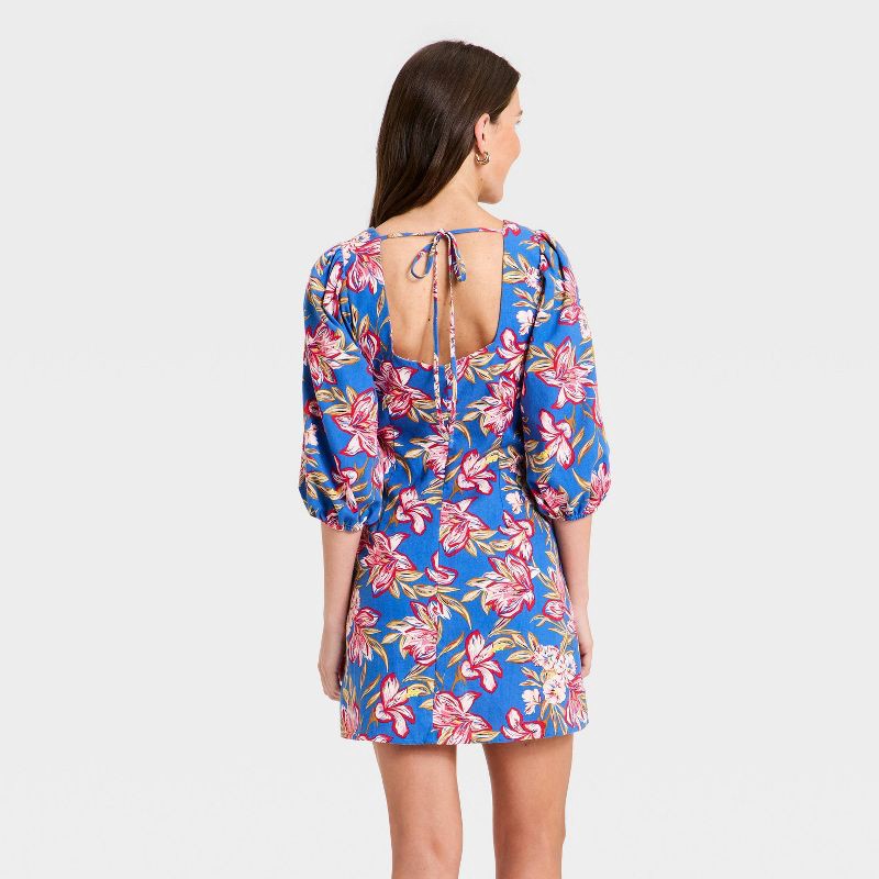 Women's Linen Mini Slip Dress - A New Day™ Blue Floral S