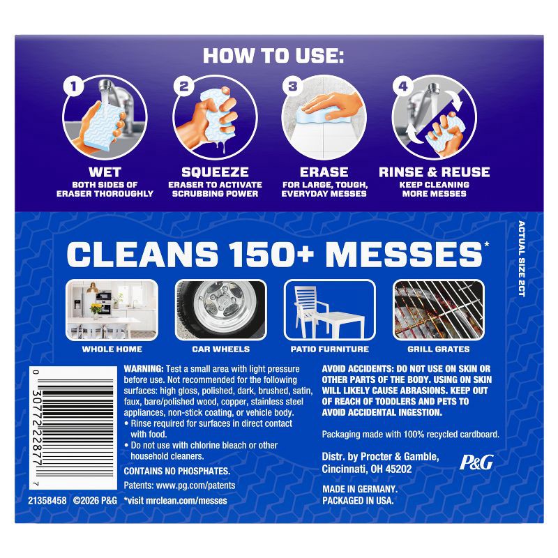 - 75% MORE SCRUBBING POWER* - Built for durability, there are 75% more water-activated micro scrubbers to help you tackle tough messes with ease. *vs Whole Home Extra Durable Eraser