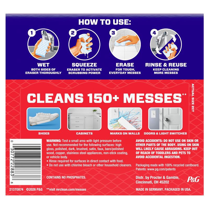 - 2-COUNT PACK - Includes 2 erasers for long-lasting cleaning power across the home.