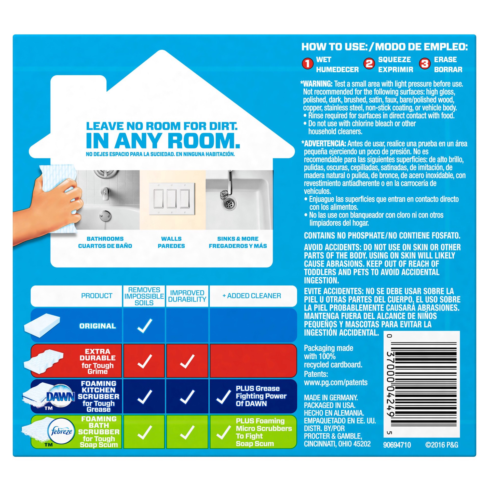 Mr. Clean Magic Eraser Extra Durable scrubber sponge cleaner is 50% Stronger to Last Longer*. The cleaning sponge's micro-scrubbers reach into the surface grooves, lifting away built up dirt and grime…