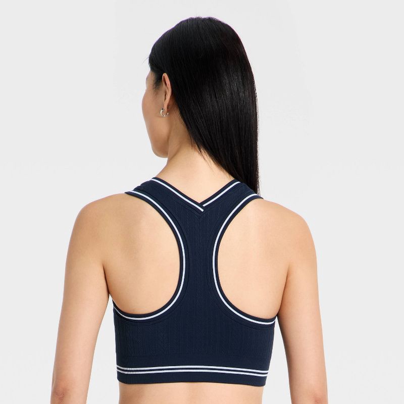 Women's Seamless Cable Knit Racerback Sports Bra - All In Motion™ Blue M