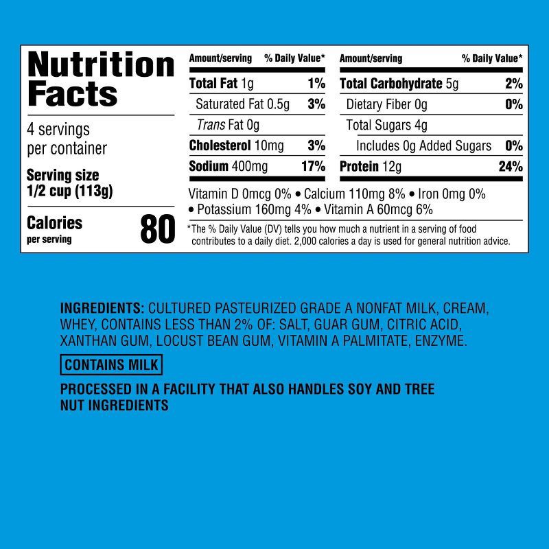 CULTURED PASTEURIZED GRADE A NONFAT MILK, CREAM, WHEY, CONTAINS LESS THAN 2% OF: SALT, GUAR GUM, CITRIC ACID, XANTHAN GUM, LOCUST BEAN GUM, VITAMIN A PALMITATE, ENZYME.' '