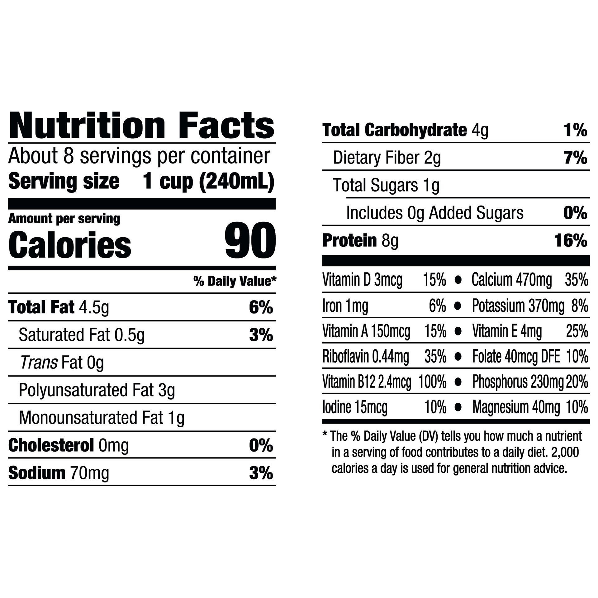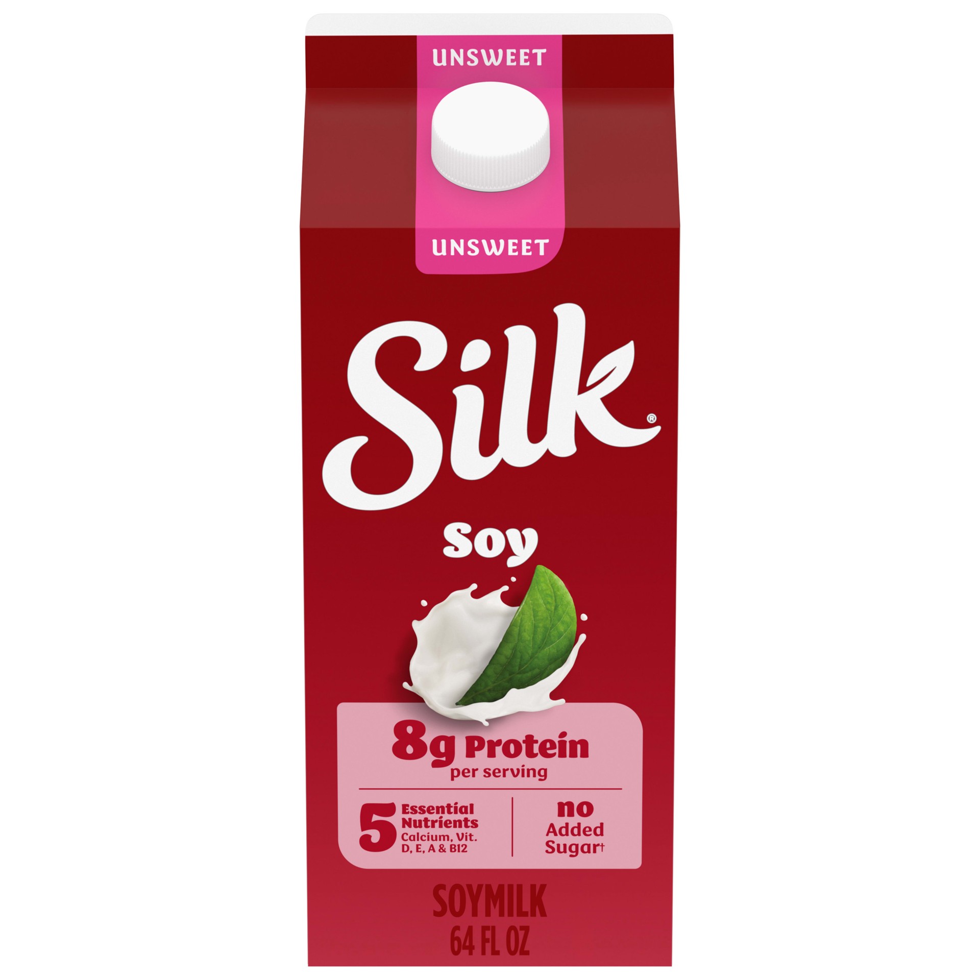 - Planty Deliciousness: One 64 fl oz carton of Silk Unsweet Soymilk made for mornings, delivering a great taste with no added sugar** and essential nutrition5 Essential Nutrients: Unsweetened soymilk contains essential nutrients for plant based diets, including calcium, vitamins D, E, A and B12Great Taste, Protein Packed: Every serving of this lactose free milk alternative has 8 grams of complete plant based protein, making it a great addition to your favorite smoothiesSmooth and Nutritious: This vegan milk contains 50% more calcium than dairy milk* per serving and vitamin D to help support strong bonesNon-GMO Project Verified, Vegan-Friendly: Lactose free, gluten free, and dairy free milk alternative is free from carrageenan, cholesterol, artificial colors and artificial flavors