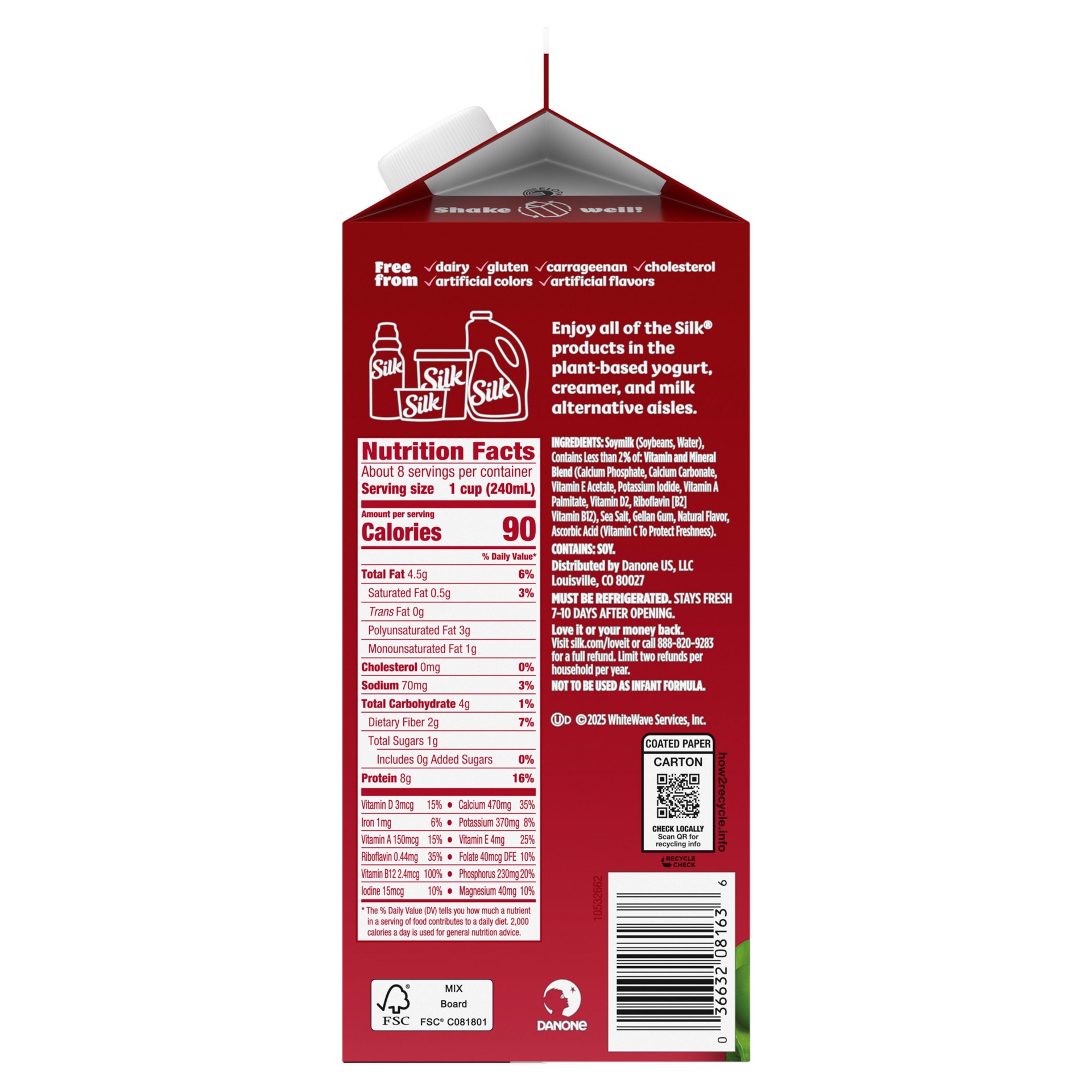 SOYMILK (SOYBEANS, WATER), CONTAINS LESS THAN 2% OF: VITAMIN AND MINERAL BLEND (CALCIUM PHOSPHATE, CALCIUM CARBONATE, VITAMIN E ACETATE, POTASSIUM IODIDE VITAMIN A PALMITATE, VITAMIN D2, RIBOFLAVIN [B…