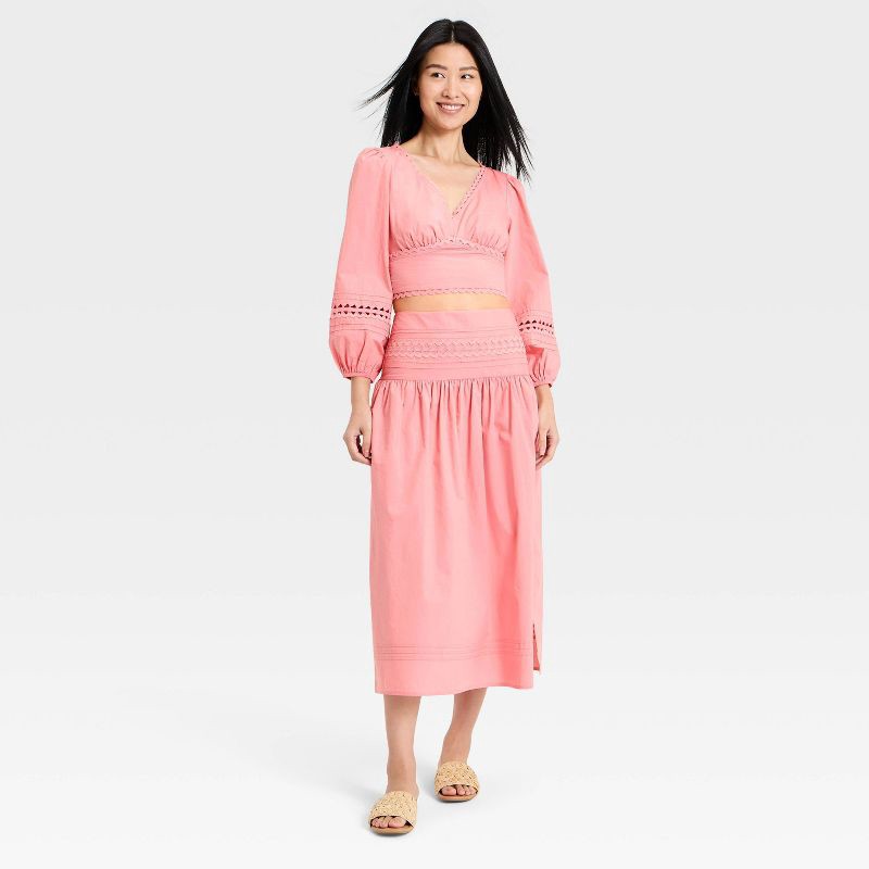 Women's Long Sleeve Eyelet Detail Top - A New Day™ Pink L