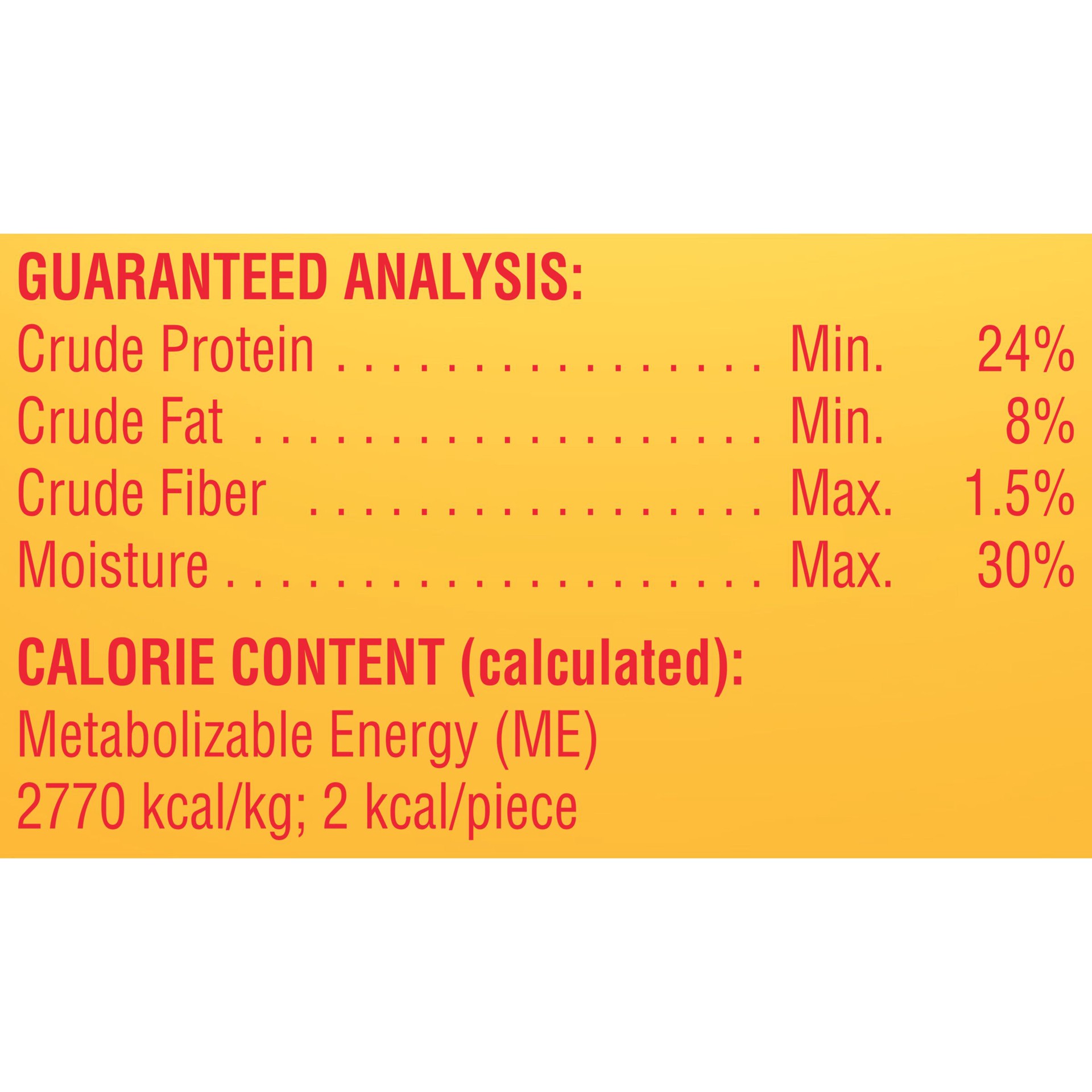 Chicken, Wheat Flour, Chicken By-Product Meal, Natural Flavor, Pea Protein, Glycerin, Dried Egg Product, Water, Brewers Dried Yeast, Animal Fat (BHA Used as a Preservative), Fish Protein Concentrate, …