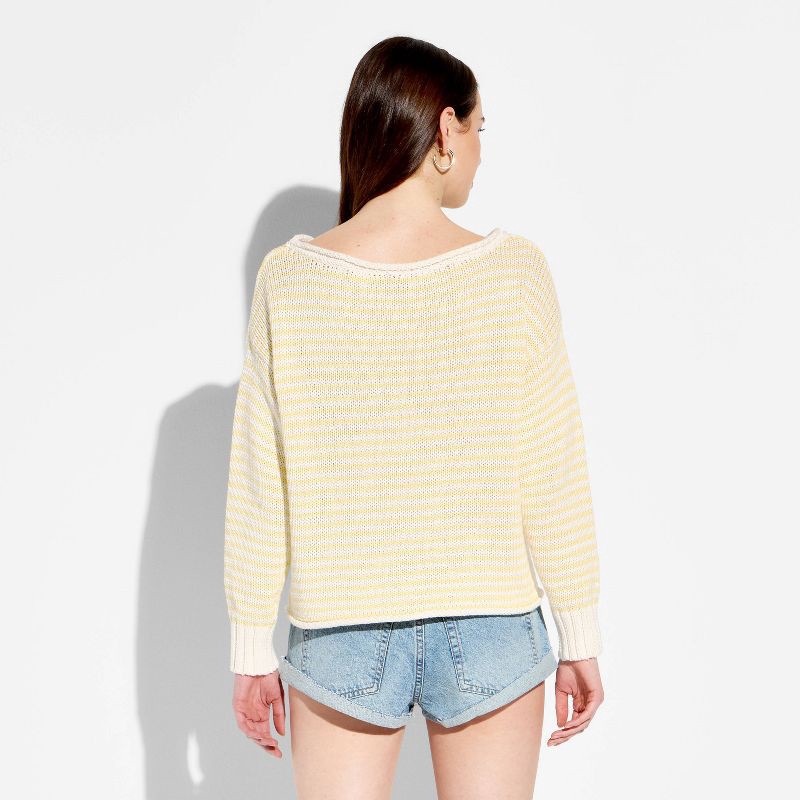 Women's Off the Shoulder Sweater - Wild Fable™ Yellow Striped XXS