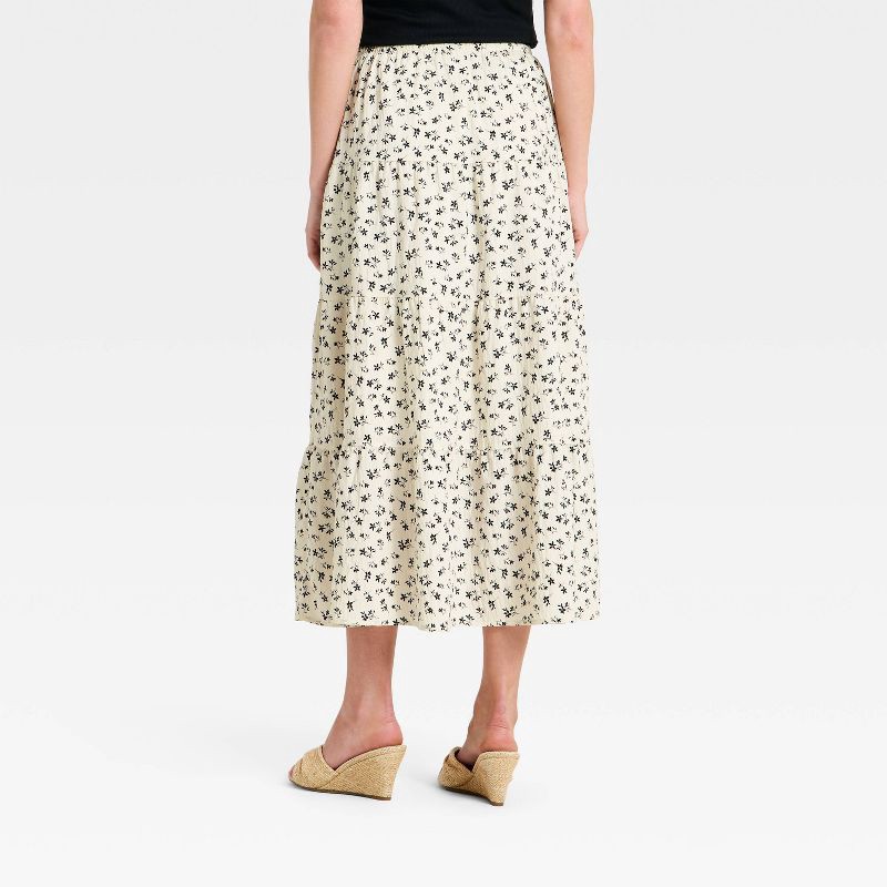 Women's Tiered Skirt - A New Day™ Cream/Black Floral XS