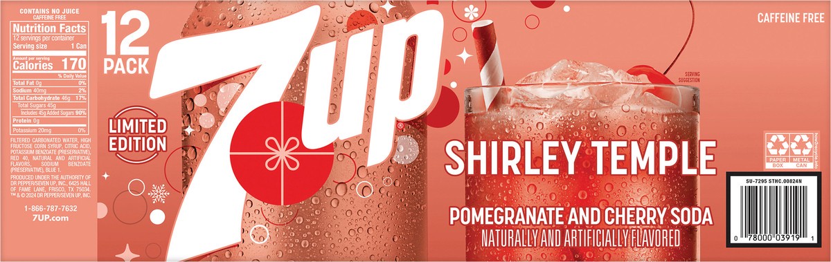 7UP Shirley Temple Soda Cans - 12-12 Oz
