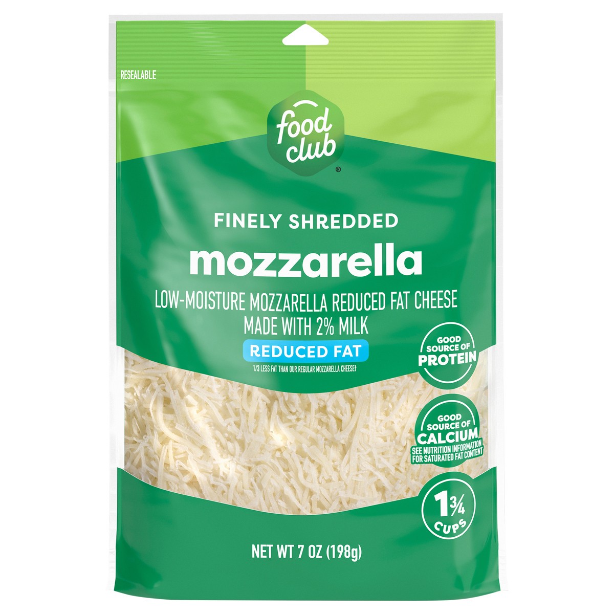 Food Club Reduced Fat Low-Moisture Mozzarella Finely Shredded Cheese 7 oz