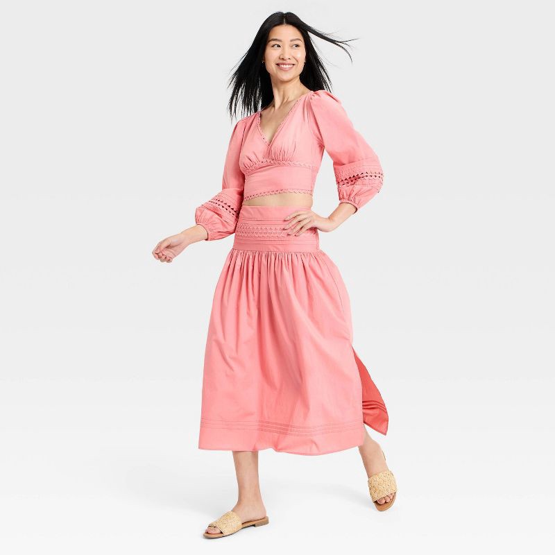 Women's Eyelet Midi Skirt - A New Day™ Pink S