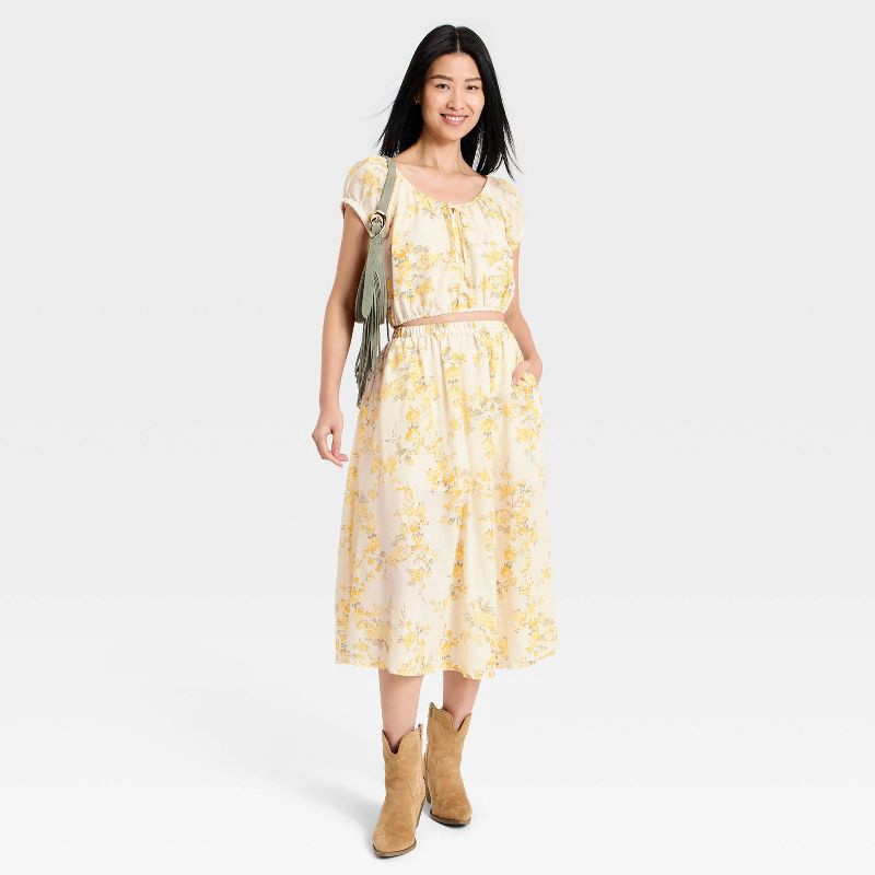 Women's Pull-On Midi Skirt - A New Day™ White Floral L