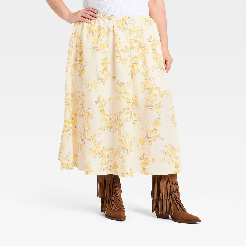 Women's Pull-On Midi Skirt - A New Day™ White Floral XXL