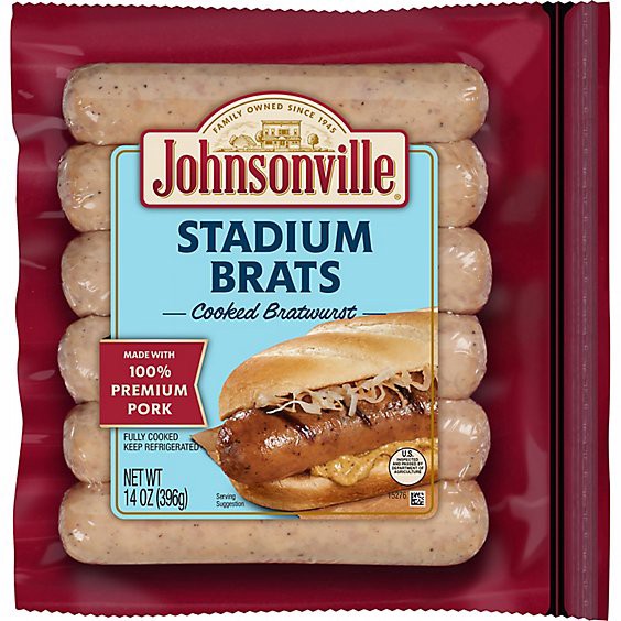 Johnsonville Brats Stadium Bratwurst Fully Cooked 6 Links - 14 Oz
