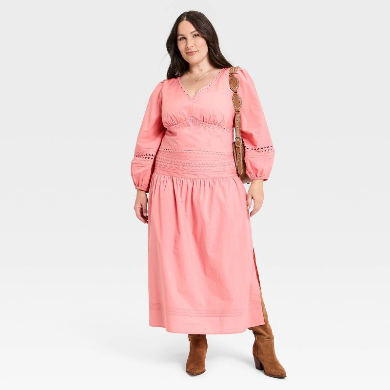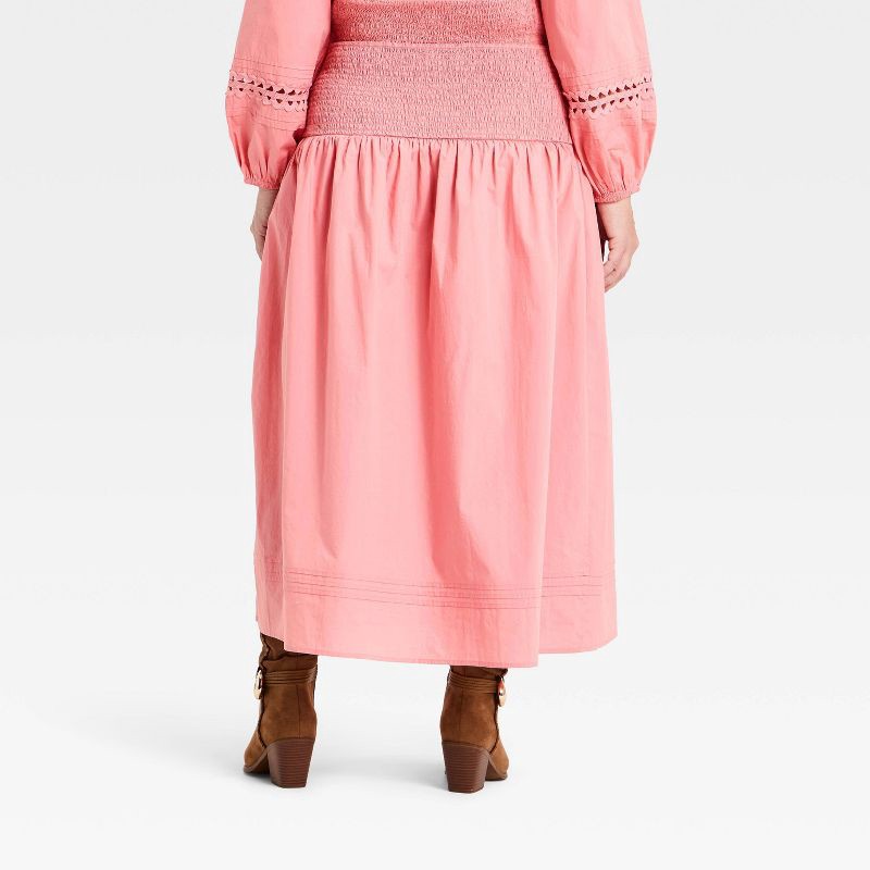 Women's Eyelet Midi Skirt - A New Day™ Pink XXL