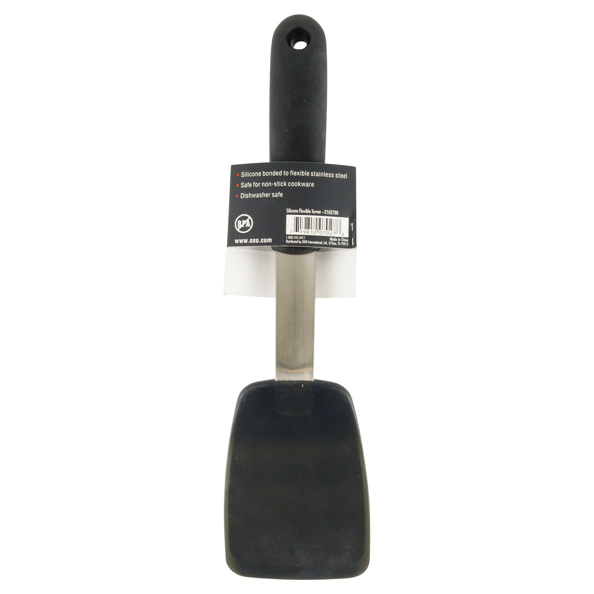 Soft, non-slip grip. Satisfaction guaranteed. Flexible. Silicon: Safe up to 600 degrees F. Silicone bonded to flexible stainless steel. Safe for non-stick cookware. Dishwasher safe. No BPA. www.oxo.co…