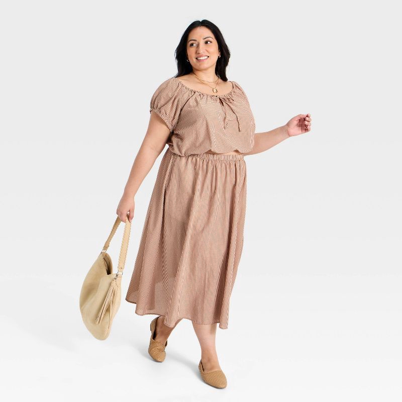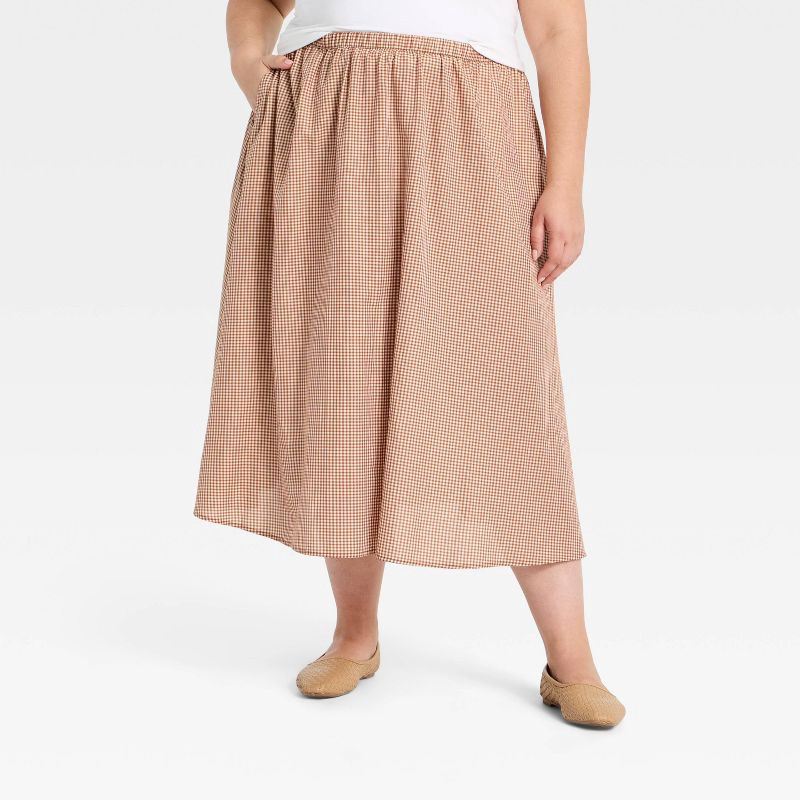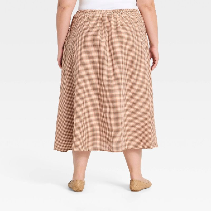Women's Pull-On Midi Skirt - A New Day™ Brown Gingham XXL