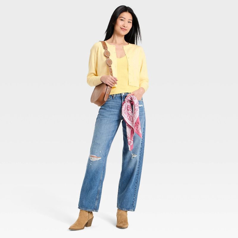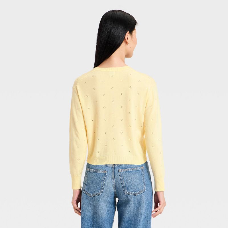 Women's Pointelle Button-Down Cardigan - A New Day™ Yellow M