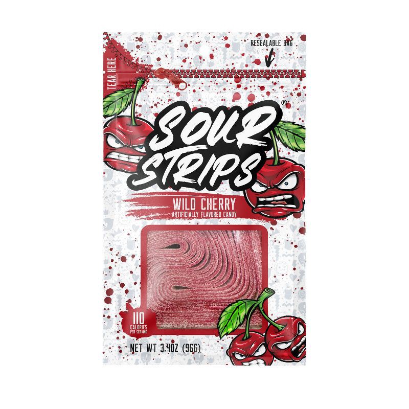 - Contains one (1) 3.4-ounce bag of SOUR STRIPS Wild Cherry Flavored Chewy Candy