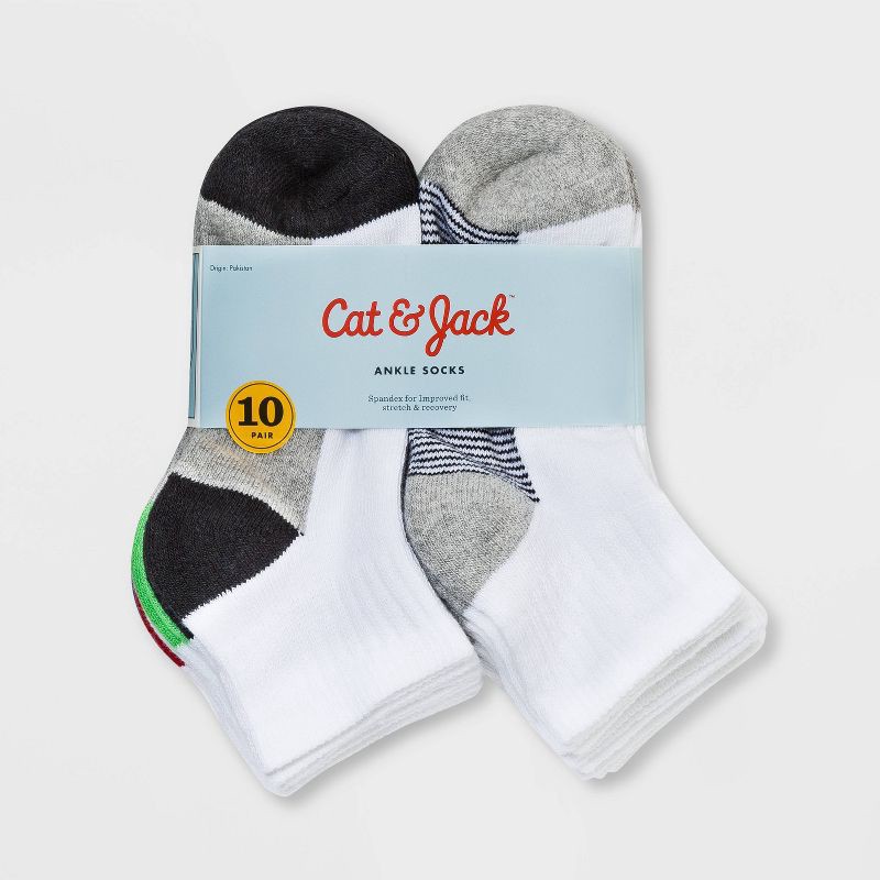 Boys' 10pk Ankle Socks - Cat & Jack™ M