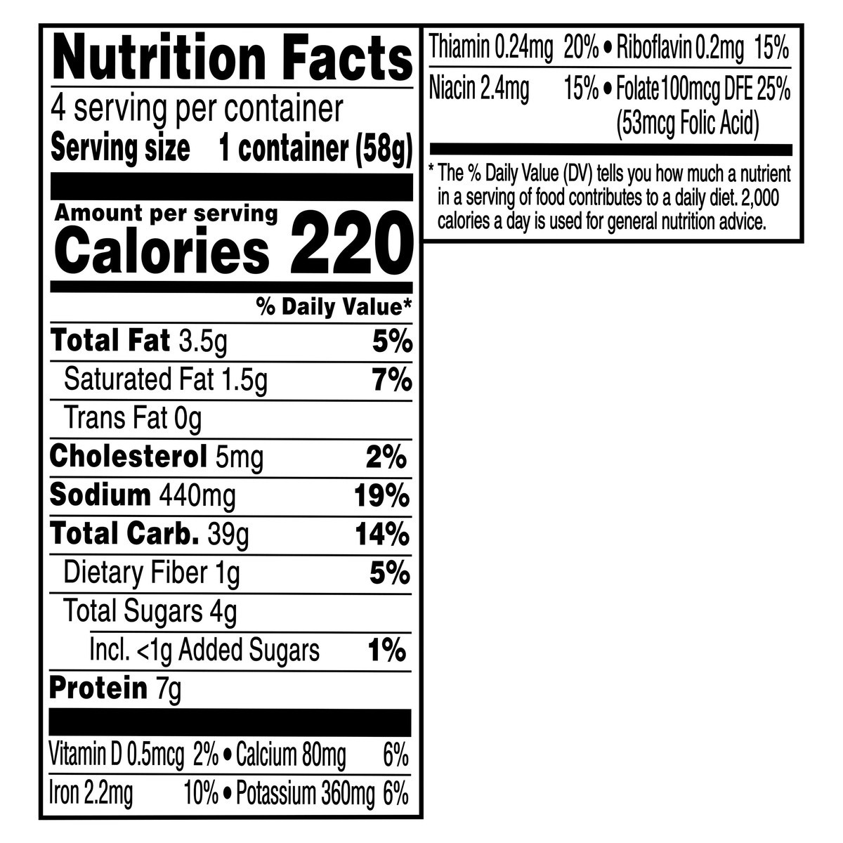 Pasta with flavored sauce. Per Serving: 220 calories; 1.5 g sat fat (7% DV); 440 mg sodium (19% DV); <1 g added sugars (1% DV). See nutrition information for sodium content. From the makers of Rice-A-…