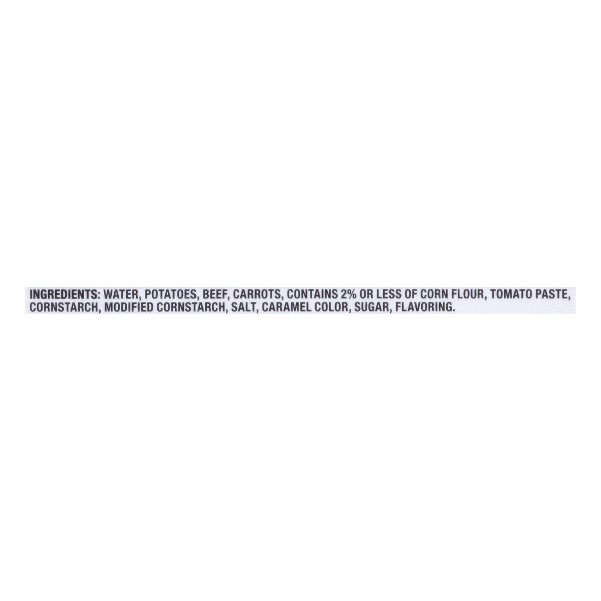 Water, Potatoes, Beef, Carrots, Contains 2% or Less of Corn Flour, Tomato Paste, Cornstarch, Modified Cornstarch, Salt, Caramel Color, Sugar, Flavoring.