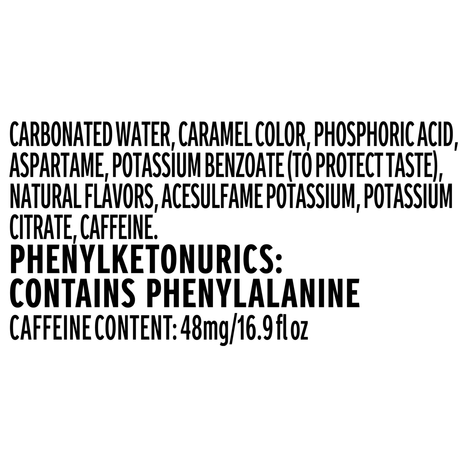 Carbonated Water\, Caramel Color\, Phosphoric Acid\, Aspartame\, Potassium Benzoate (to Protect Taste)\, Natural Flavors\, Acesulfame Potassium\, Potassium Citrate\, Caffeine.