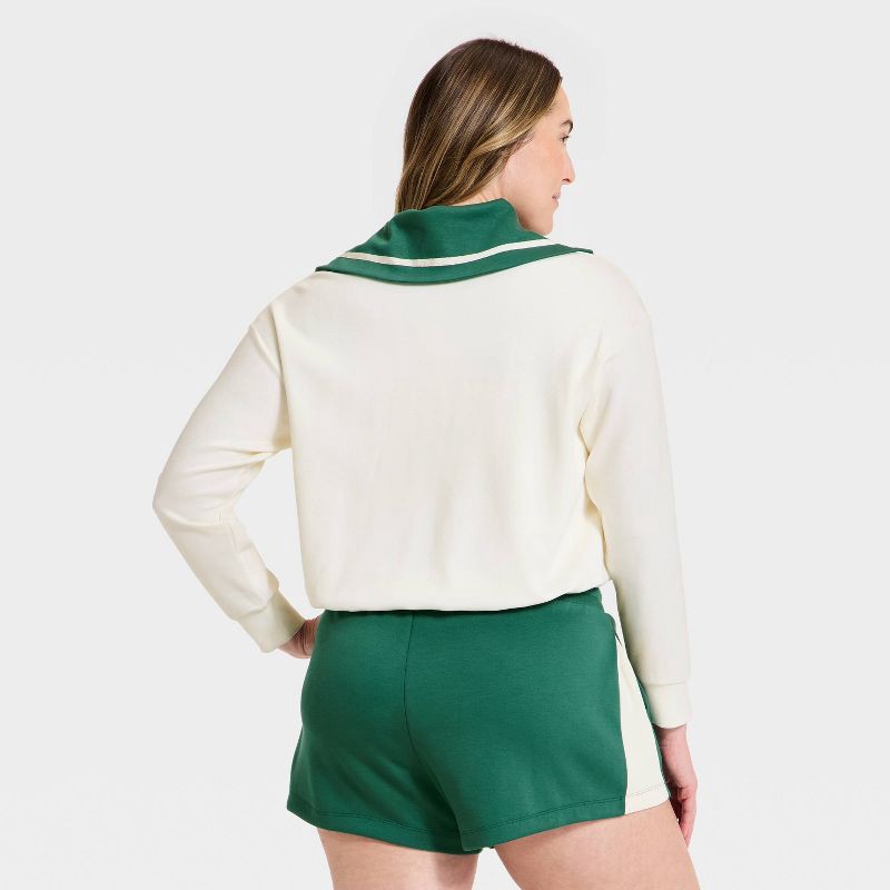 Women's Airy Sleek Pique 1/2 Zip Bubble Hem Pullover Sweatshirt - All In Motion™ Cream S