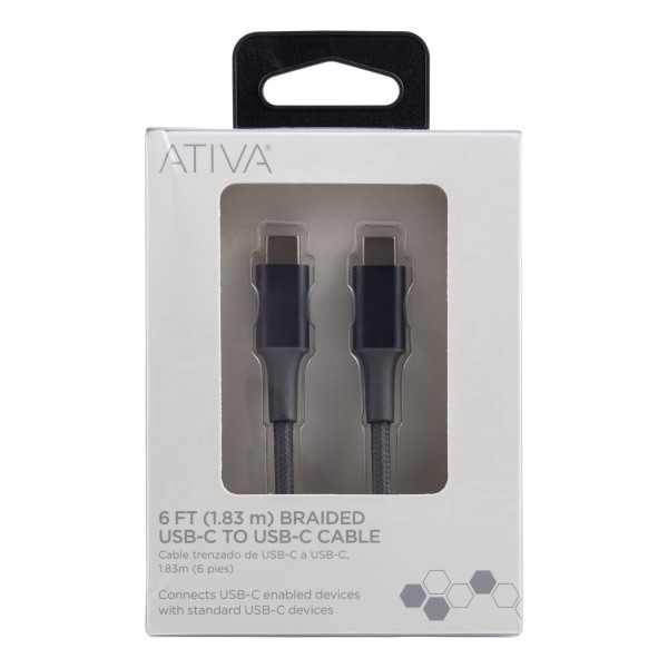 Charge and sync your go-to devices using this premium Ativa USB-C cable. Thanks to the reversible connectors, pairing devices and chargers is a snap. Used to charge and sync USB-C devices with USB-C c…