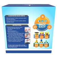 Keeps water crystal clear and removes odors and discoloration. Easy to assemble. This economy pack has 8 large cartridges.