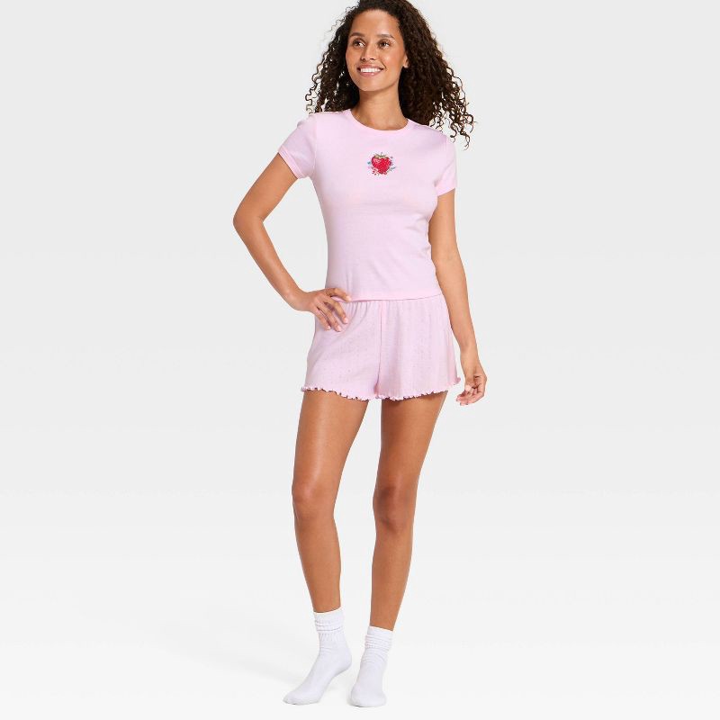 Women's Graphic Short Sleeve Pajama Shirt - Wild Fable™ Pink XS