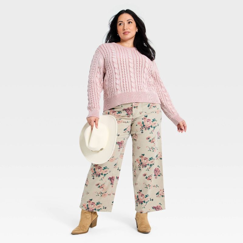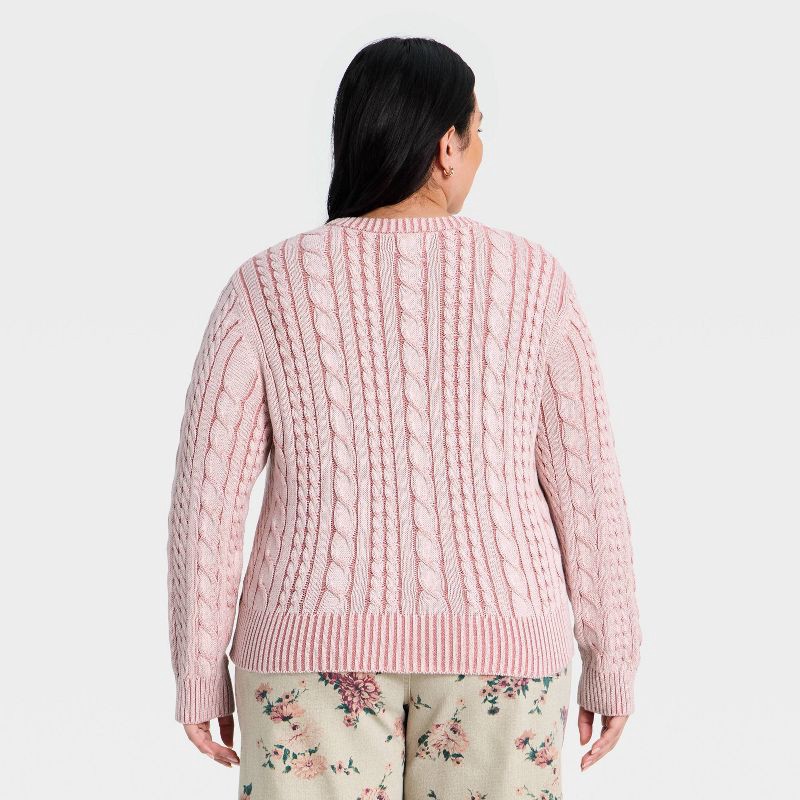 Women's Western Cable Crewneck Pullover Sweater - Universal Thread™ Pink XXL