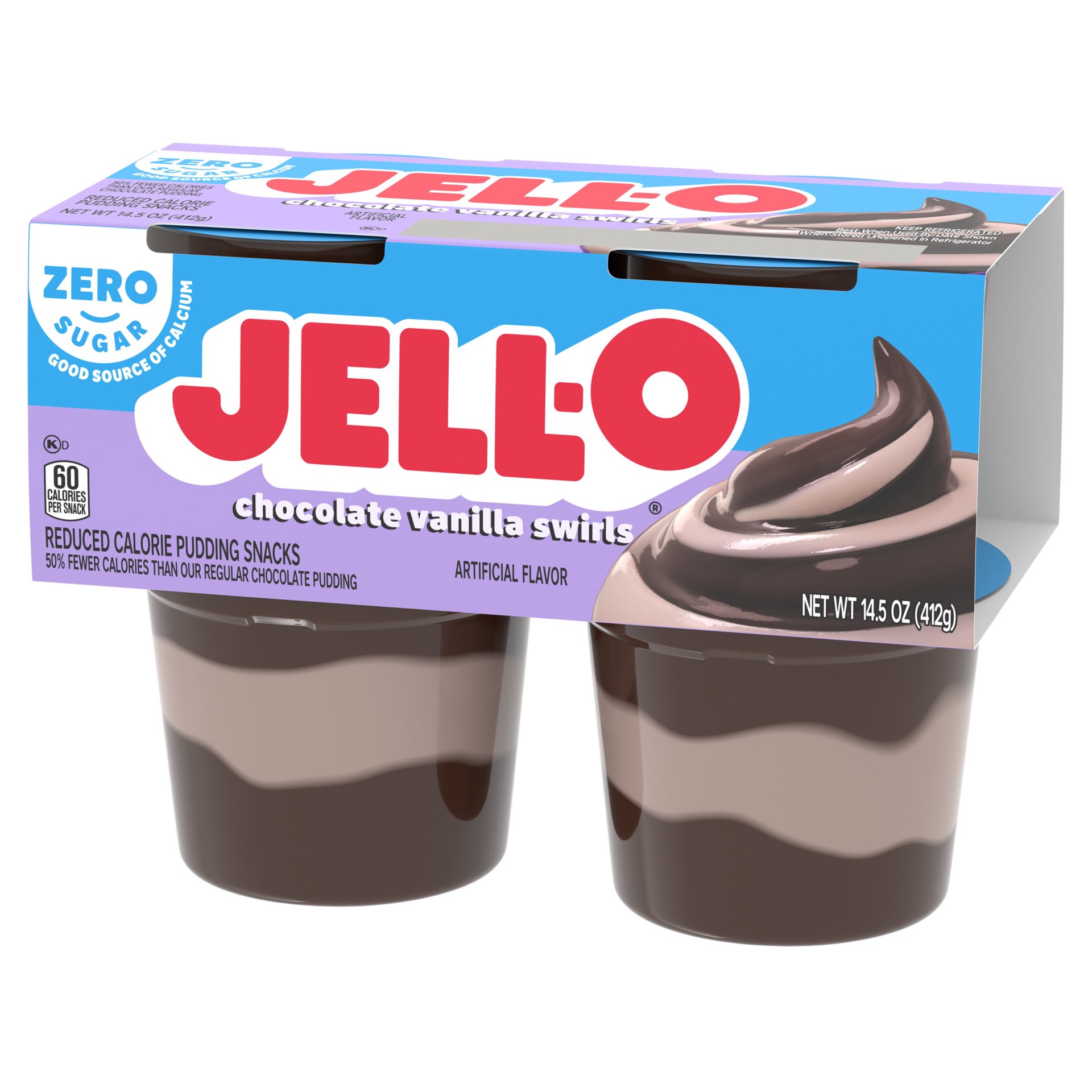 Jell-O Zero Sugar Chocolate Vanilla Swirls Artificially Flavored Pudding Cups deliver the great taste of Jell-O Pudding in a reduced-calorie choice. Our delicious on-the-go pudding comes in individual…