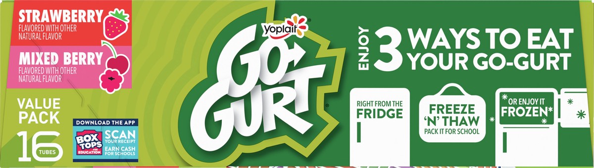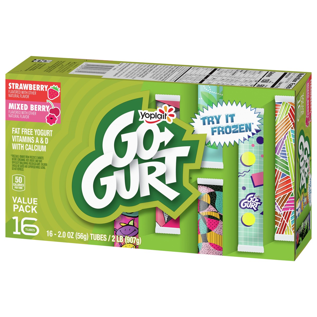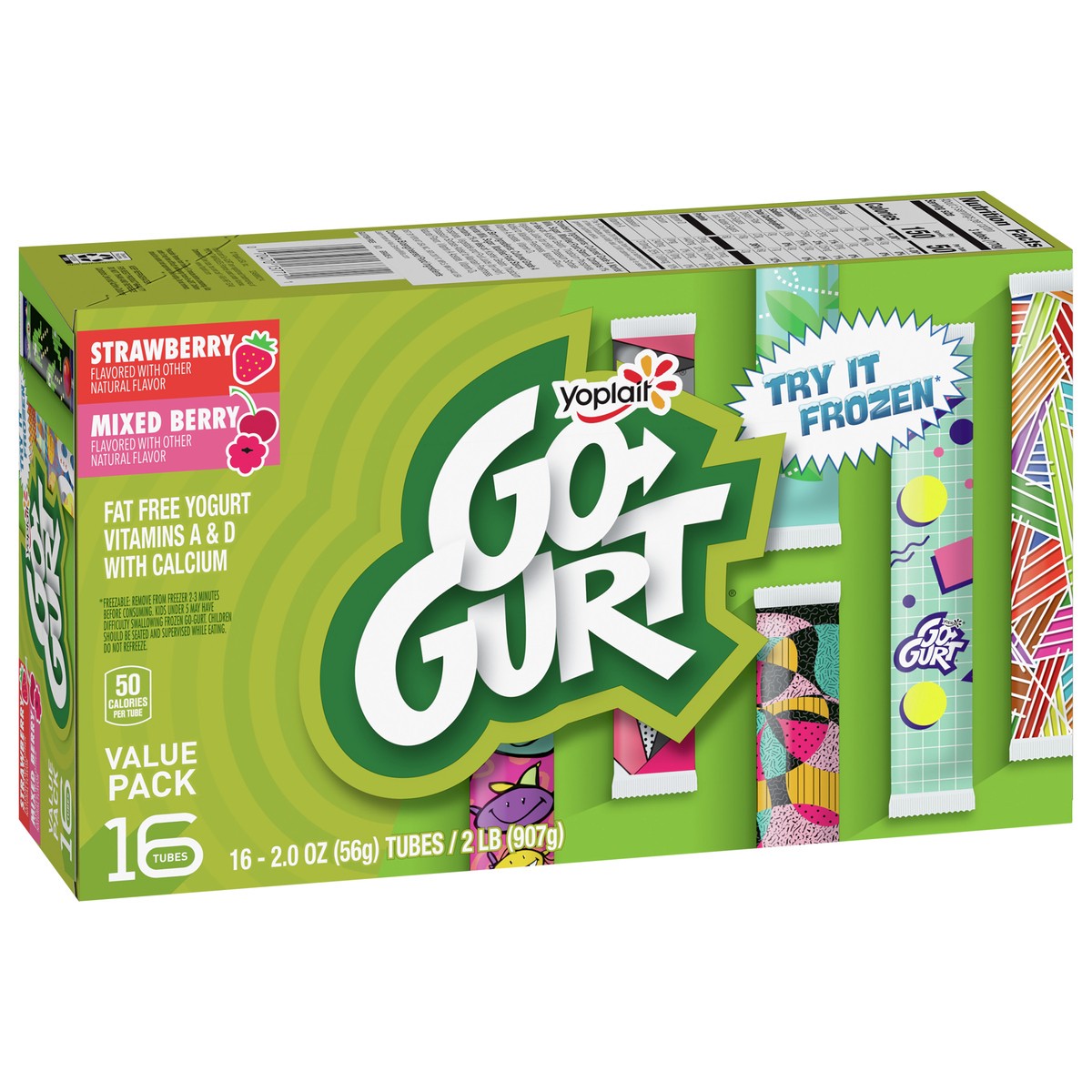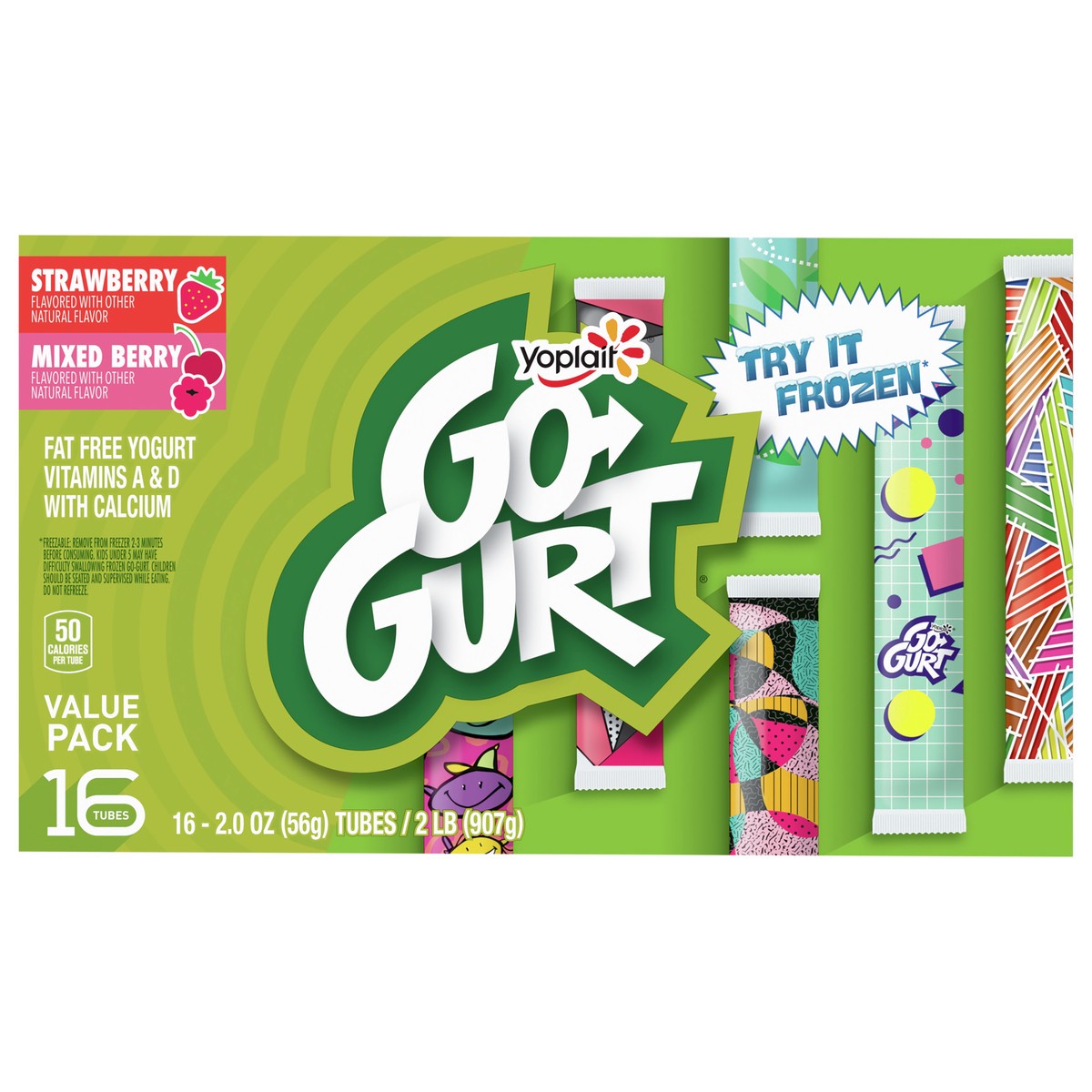 Enjoy fun and delicious on the go snacks with Go-GURT Strawberry and Mixed Berry Kids Low Fat Yogurt Variety Pack. This flavored yogurt variety pack includes 16 easy-to-open yogurt tubes with playful …