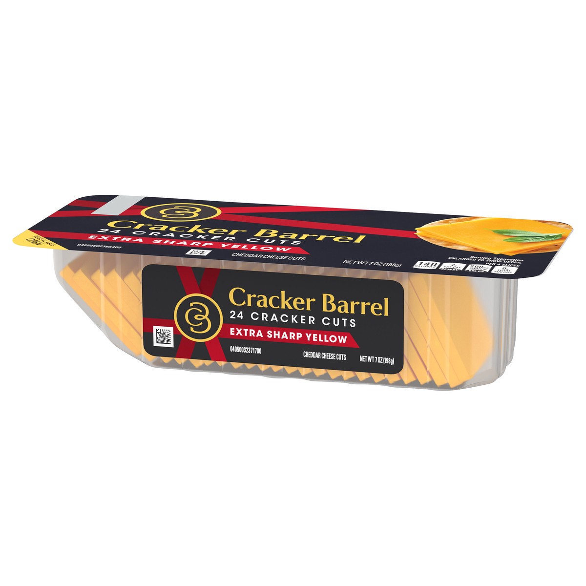 Cracker Barrel Cracker Cuts Extra Sharp Yellow Cheddar Cheese Slices offer the bold flavor of award-winning cheddar in a cracker-sized cut for speedy serving. Made with real milk, the smooth cheese pa…