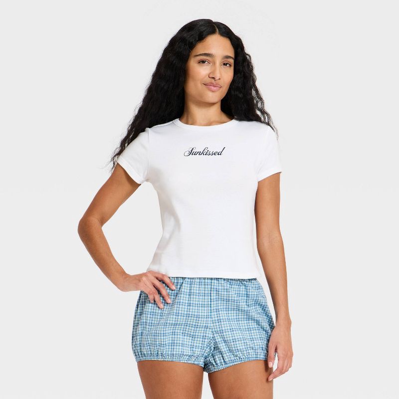 Women's Graphic Short Sleeve Pajama Shirt - Wild Fable™ White S