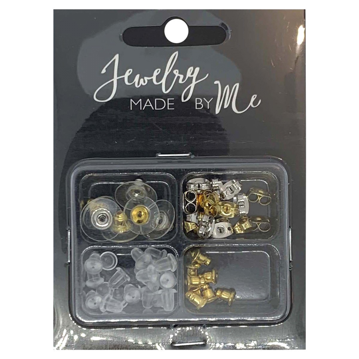 Never worry about finding a missing earring back again This set of earring backs has four different kinds, in multiple colors. There are bullet clutch with discs in both silver and gold. Rubber bullet…