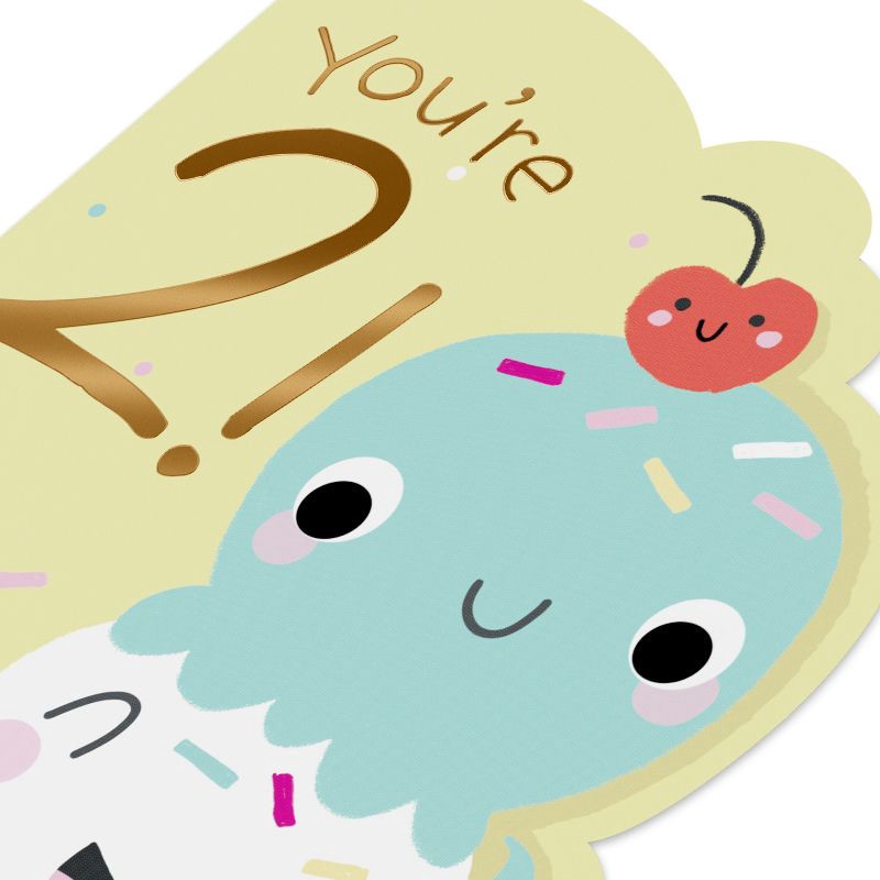 - This 2nd birthday card features a cute ice cream cone character topped with a cherry, all printed on high-quality card stock.