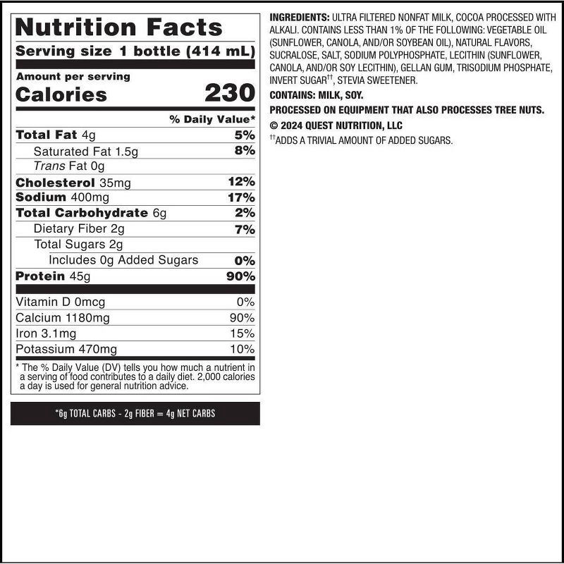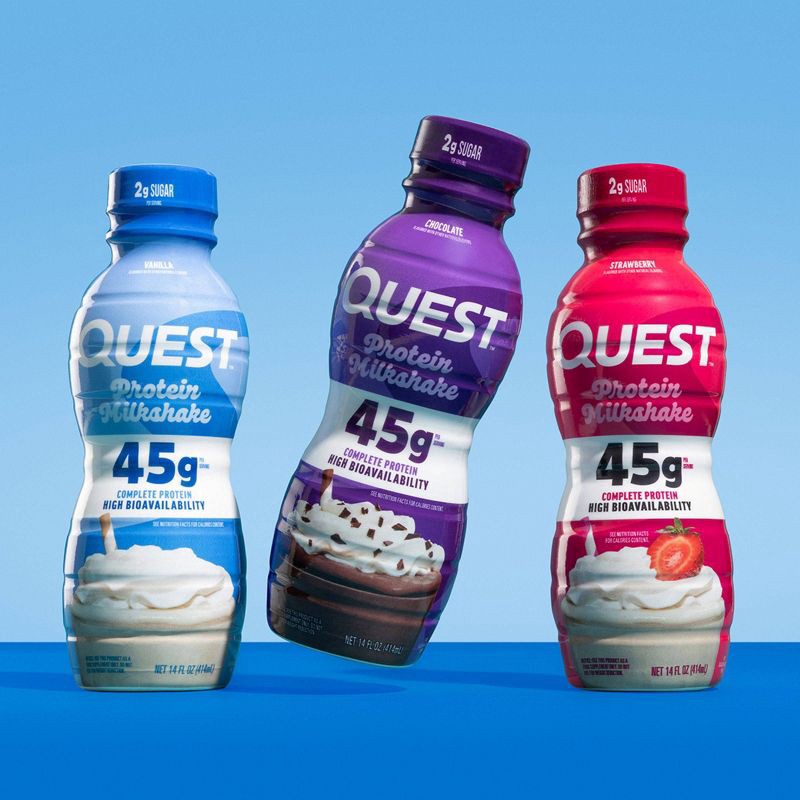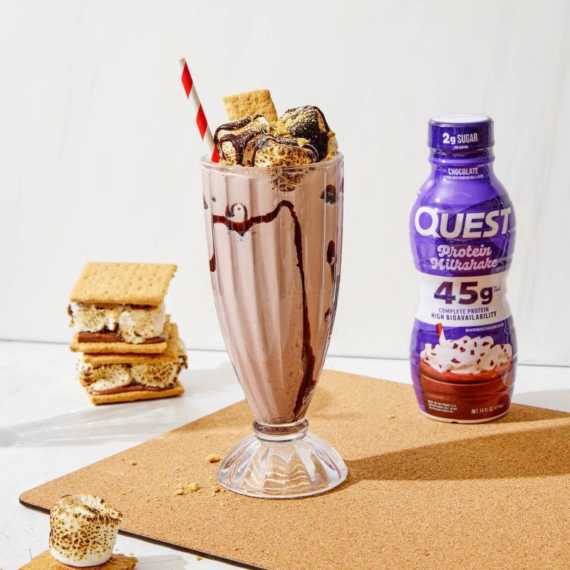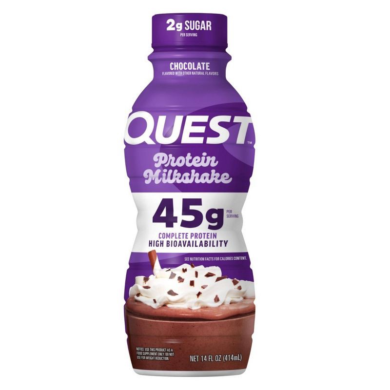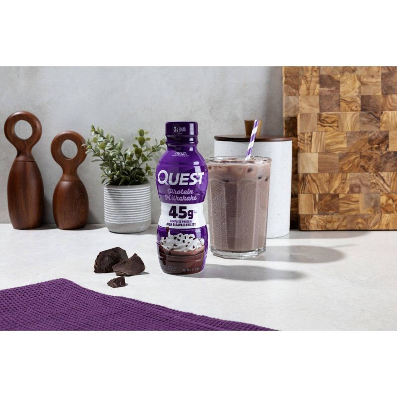 - Quest Chocolate Flavored Protein Shakes deliver the smooth, delicious chocolate flavor you love with 45g of high bioavailability protein per serving so you can experience the rich satisfaction of a milkshake - without saying “no” to protein.
