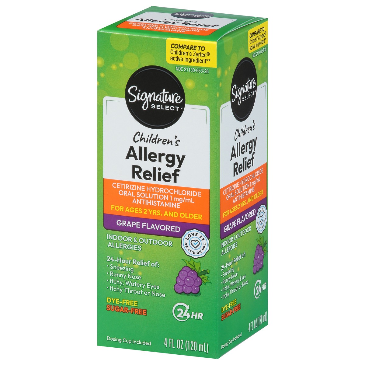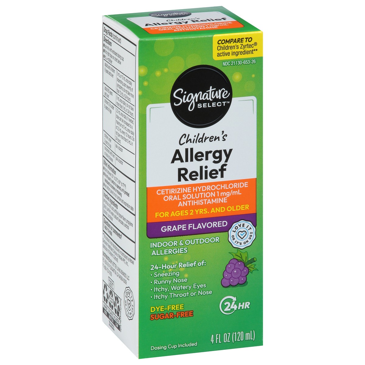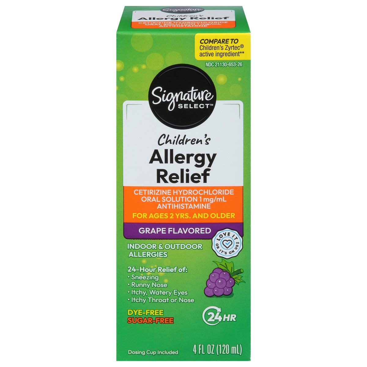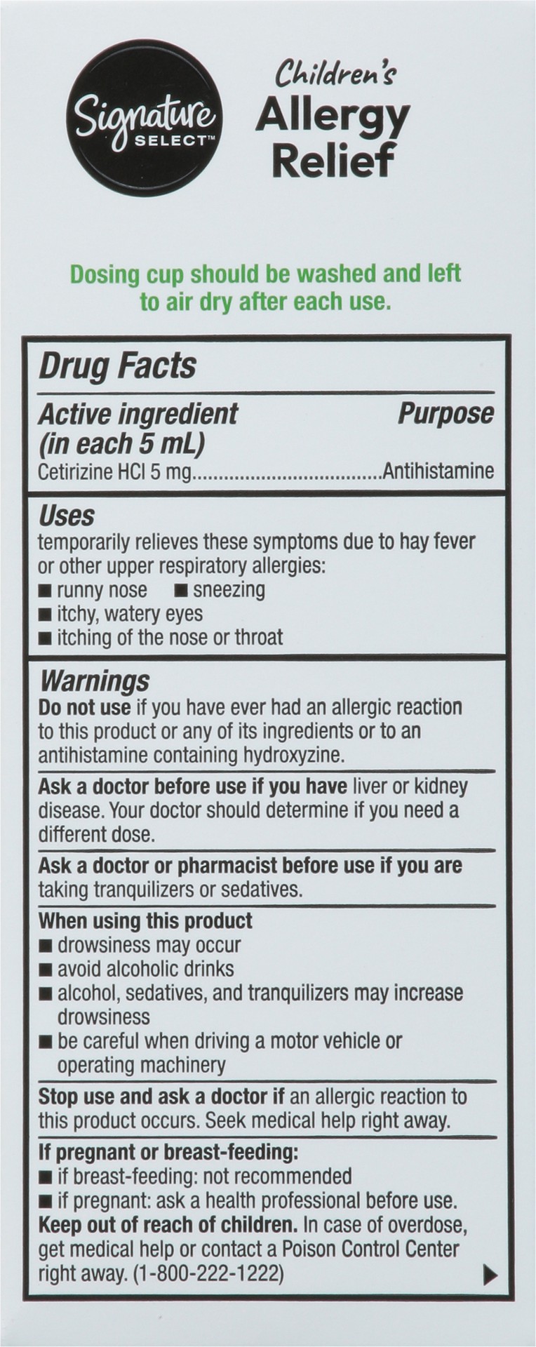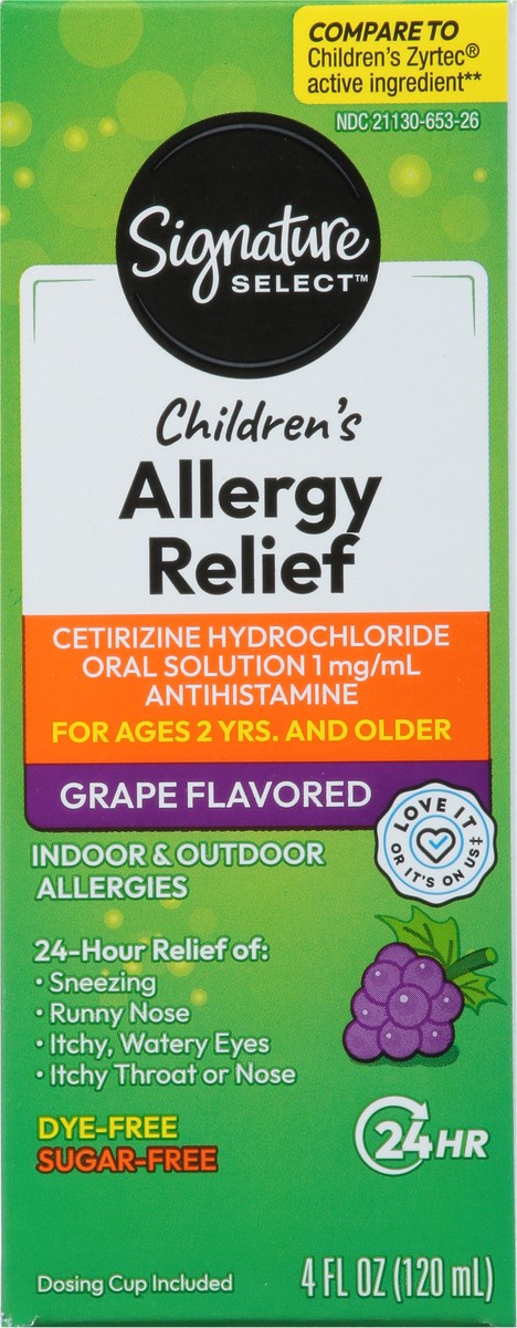 Signature Care Allergy Relief Childrens 24 Hour Cetirizine Hydrochloride Grape Flavor - 4 Fl. Oz.