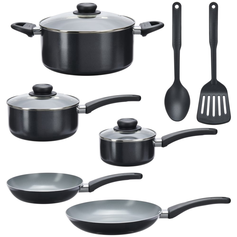 GoodCook® Everyday Ceramic Nonstick, 10pc Set, Black HEALTHY CERAMIC NONSTICK: Cook safely and healthier with our ceramic nonstick that's made without PFOA, PTFE, PFAS, lead and cadmium MADE WITH CERA…