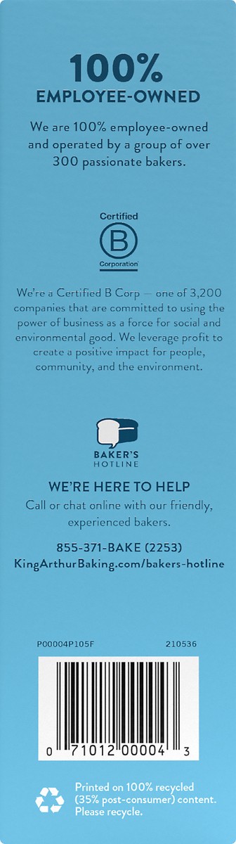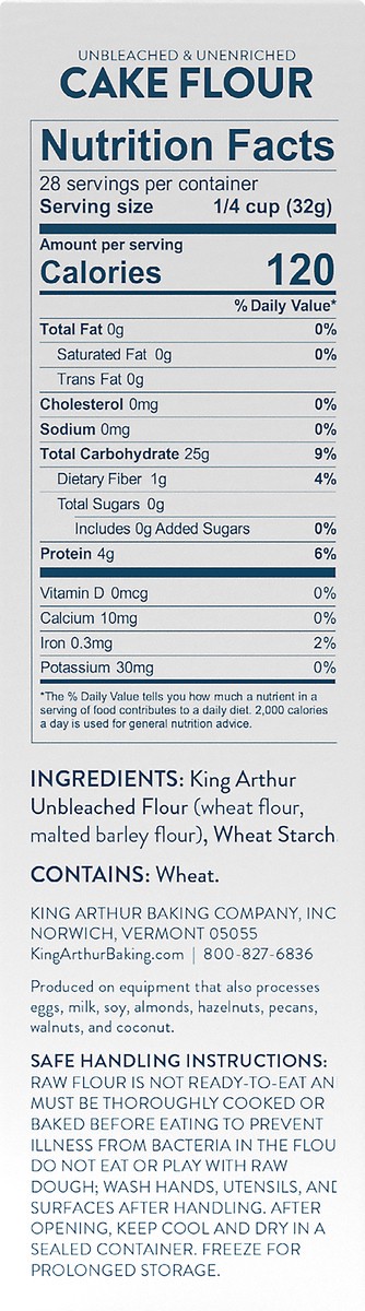 King Arthur Unbleached Flour (Wheat Flour, Malted Barley Flour), Wheat Starch.