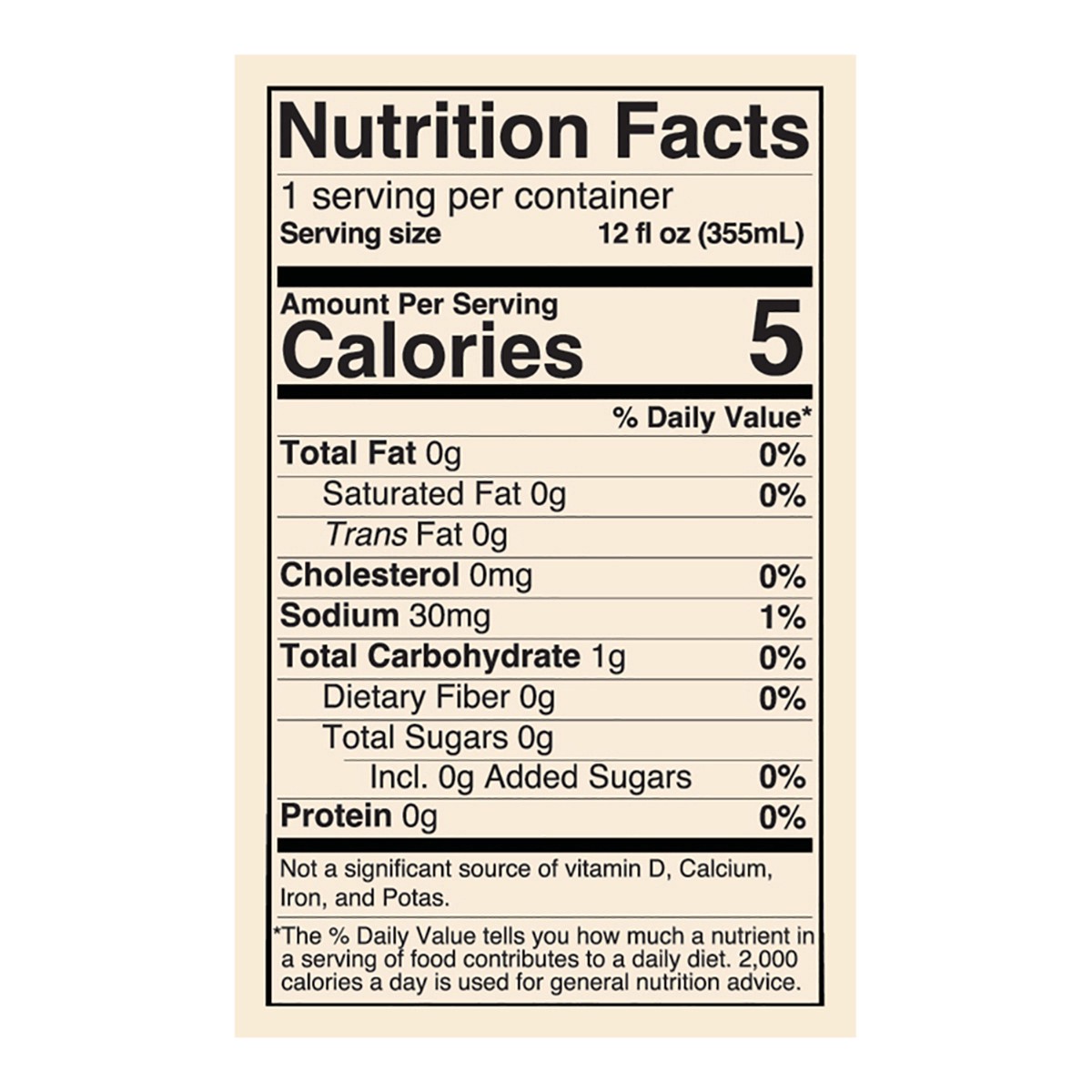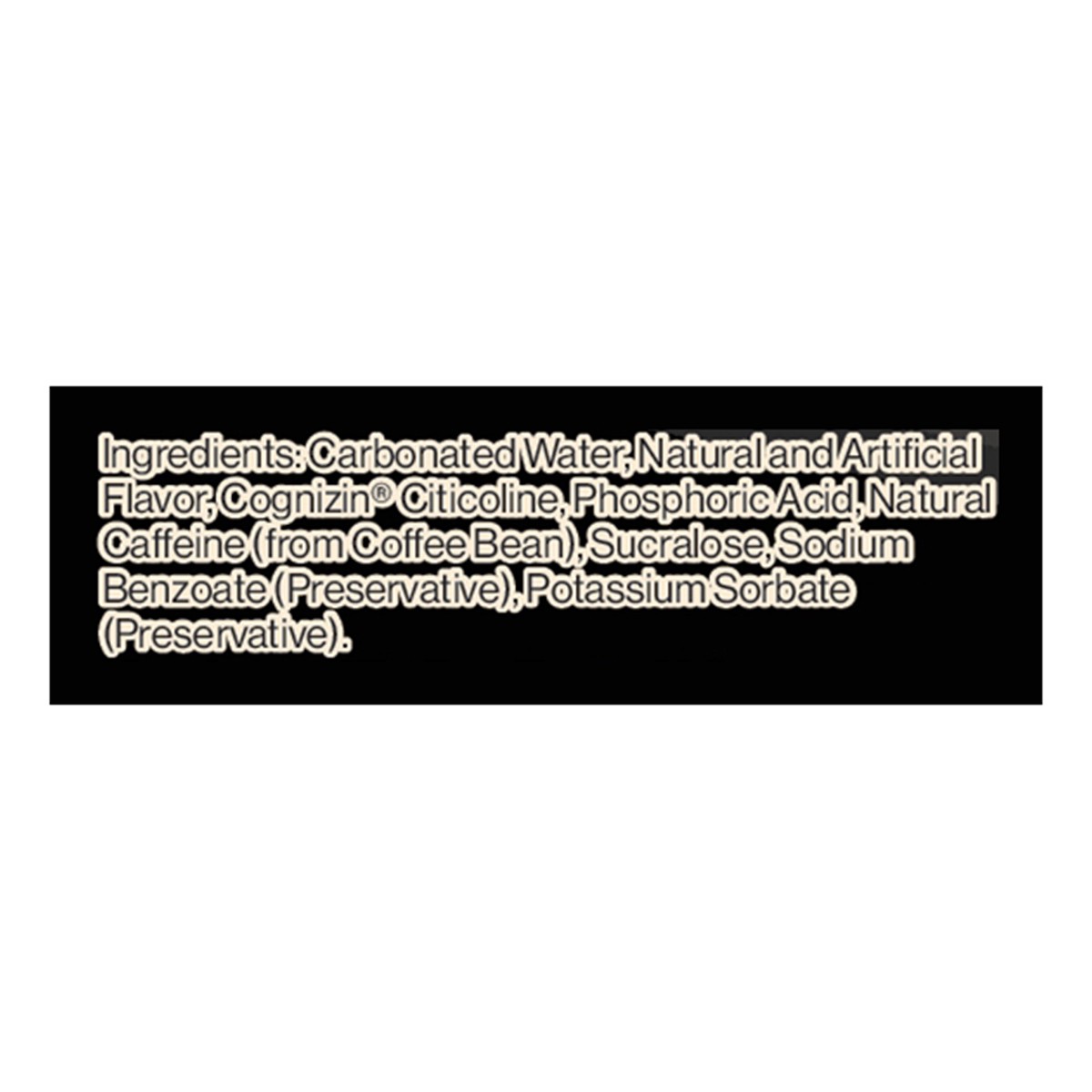 Carbonated Water, Natural and Artificial Flavor, Cognizin Citicoline, Phosphoric Acid, Natural Caffeine (from Coffee Bean), Sucralose, Sodium Benzoate (Preservative), Potassium Sorbate (Preservative).