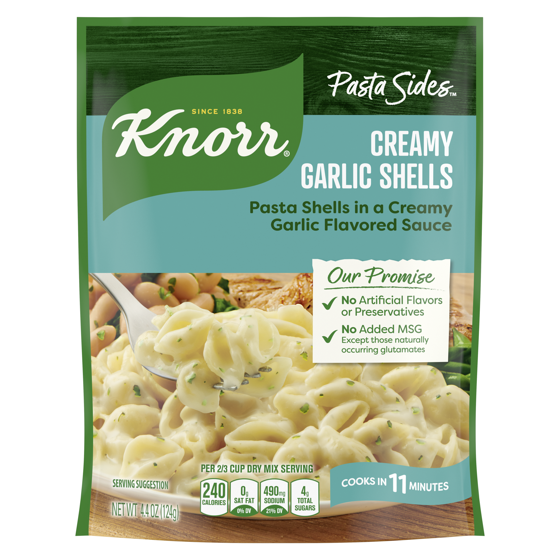 Make great-tasting meals for your family quickly and easily, with our delicious pasta sides. Knorr Pasta Sides Creamy Garlic Shells expertly combines garlic and butter with a Romano-cheese-flavored sa…