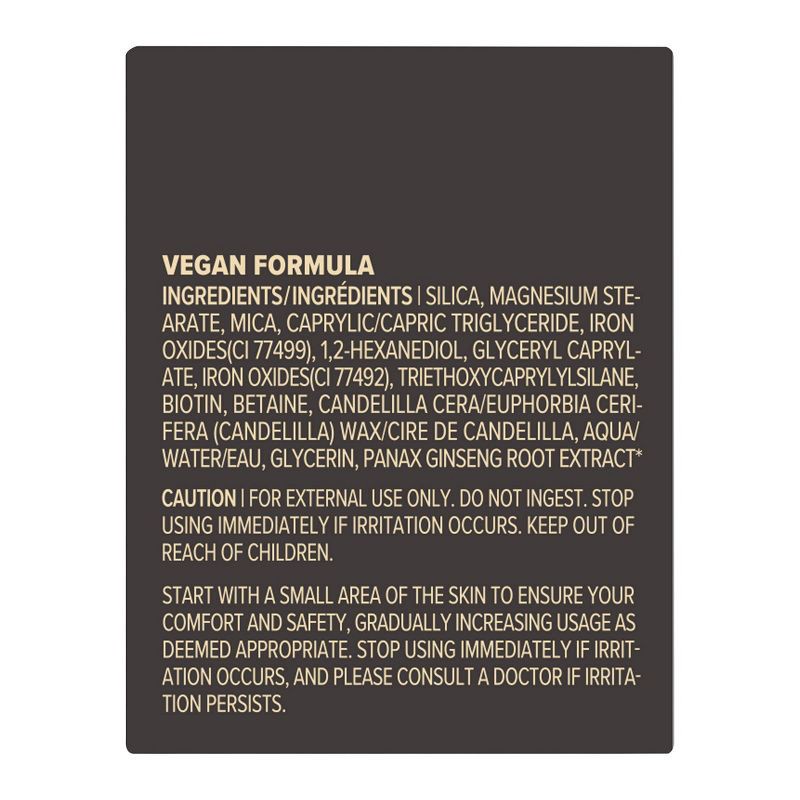 SILICA, MAGNESIUM STEARATE, MICA, CAPRYLIC/CAPRIC TRIGLYCERIDE, IRON OXIDES(CI 77499), 1,2-HEXANEDIOL, GLYCERYL CAPRYLATE, IRON OXIDES(CI 77492), TRIETHOXYCAPRYLYLSILANE, BIOTIN, BETAINE, CANDELILLA C…