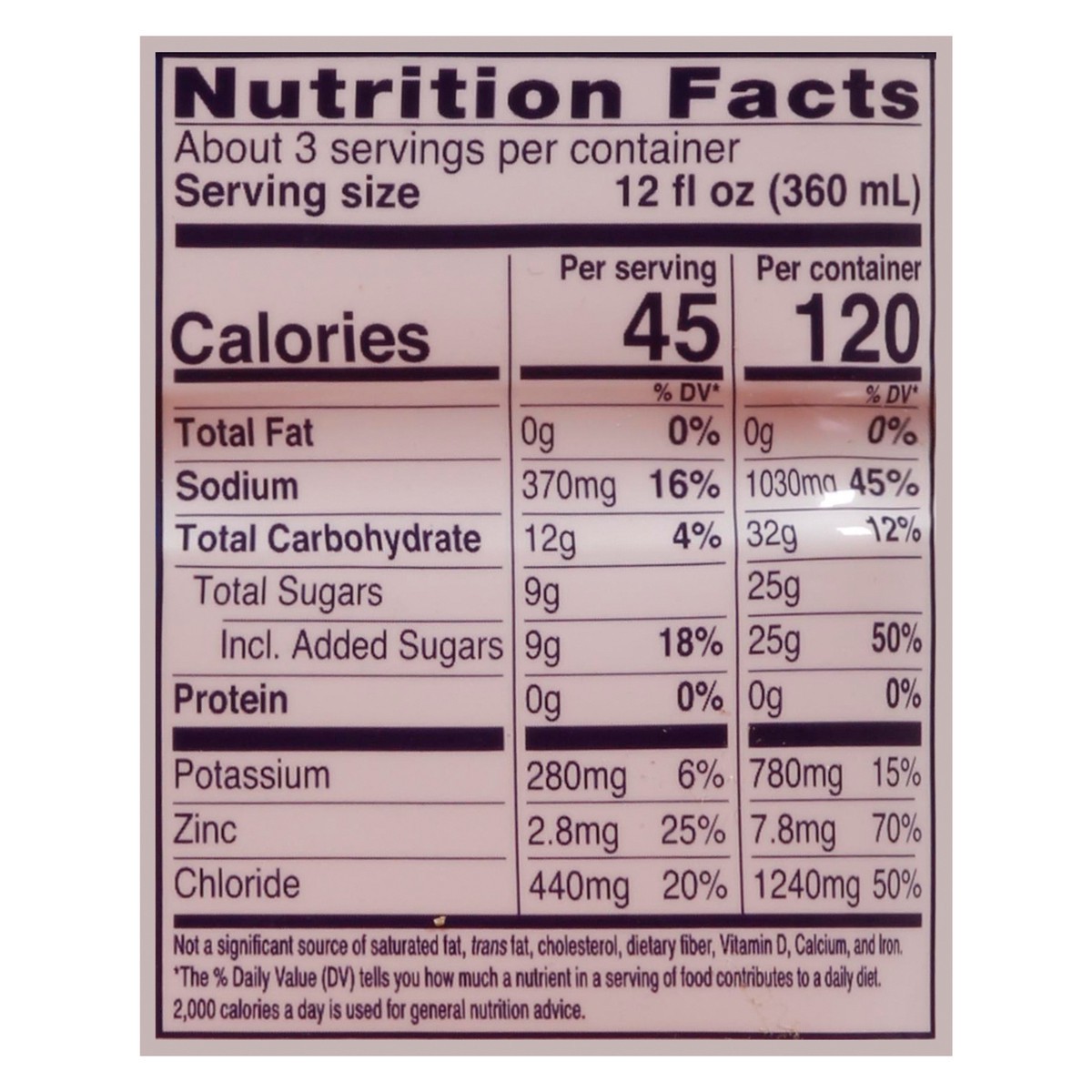Water, Dextrose; Less than 0.5% of: Citric Acid, Potassium Citrate, Salt, Sodium Citrate, Natural Flavor, Sucralose, Acesulfame Potassium, Zinc Gluconate, Red 40, and Blue 1.