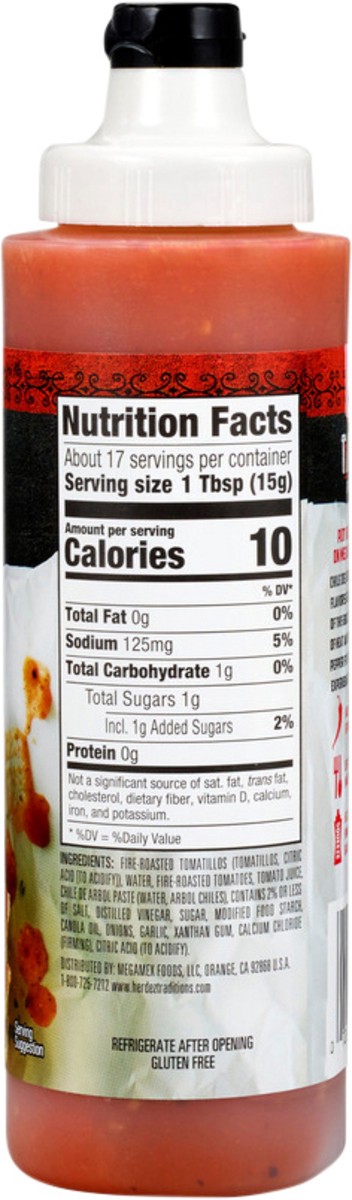 Fire-Roasted Tomatillos (Tomatillos, Citric Acid [to Acidify]), Water, Fire-Roasted Tomatoes, Tomato Juice, Chile De Arbol Paste (Water, Arbol Chiles), Contains 2% or Less of: Salt, Distilled Vinegar,…
