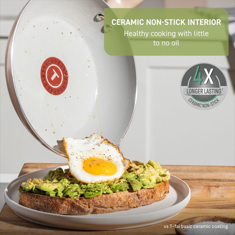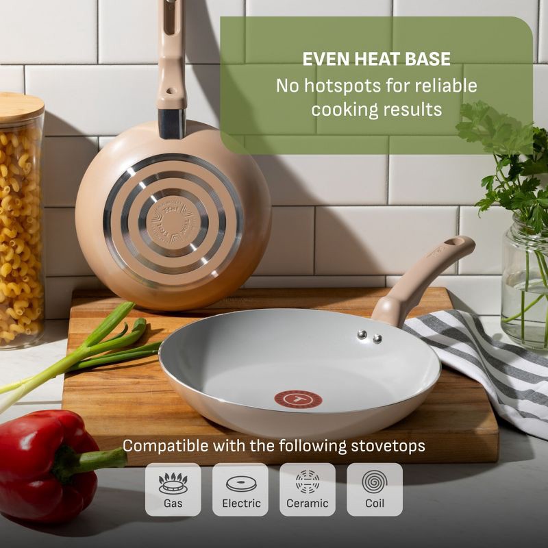 T-Fal 12pc Simply Cook Ceramic Cookware Set Beige: Nonstick Pots & Pans, Tempered Glass Lids, Ergonomic Handles
