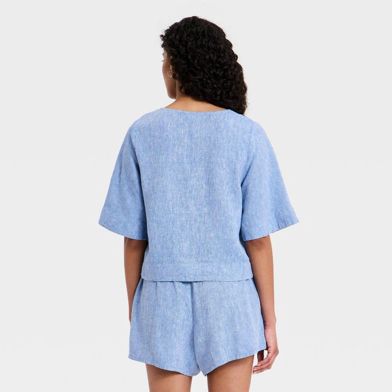 Women's Bell Elbow Sleeve Keyhole Peasant Top - Universal Thread™ Chambray M