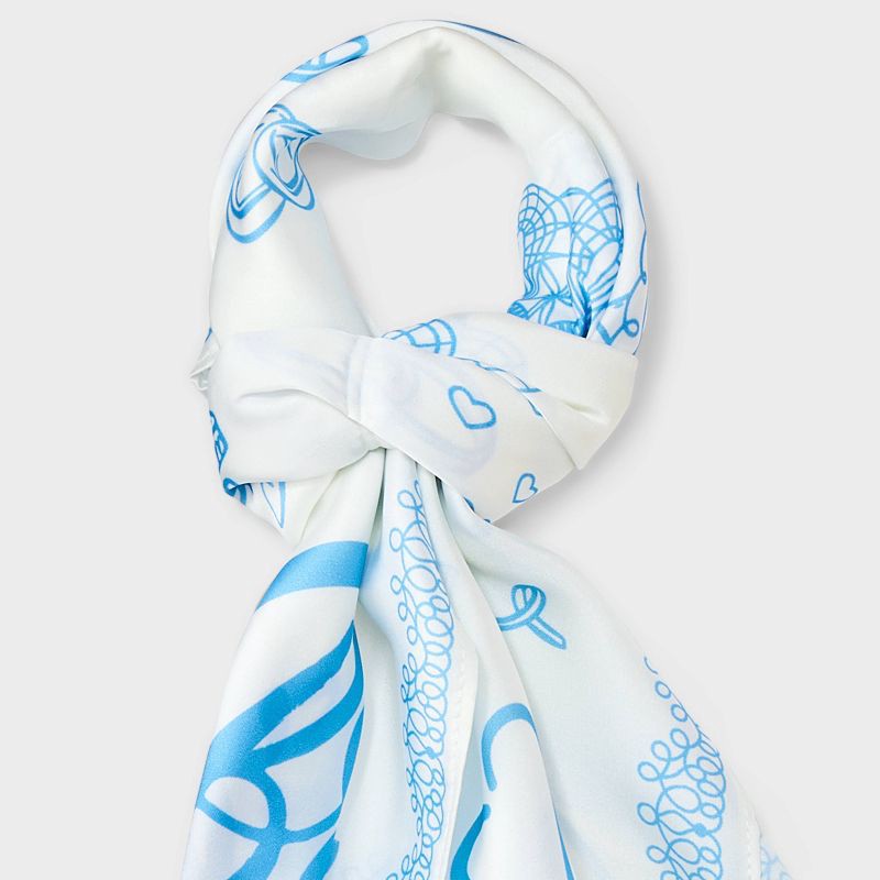Make a bold statement with this Bridal Icon Scarf. Made of polyester-recycled polyester blend fabric, this bridal shower features a "Bride" icon along with beautiful patterns in a blue hue on a white …